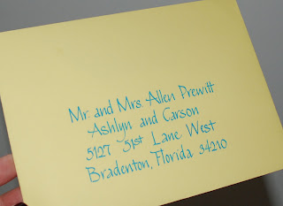 I get pretty ecstatic about simple things, such as the perfect shade of green or the luxurious texture of paper that's so awesome, it stimulates emotion in one brush of the fingertips. I must say, Jennifer Larkin over at JKL Creations outdid herself on this masterpiece. I was in envelope euphoria working on these. I actually hated to write on them they were so beautiful. Created for her sister in-law Danielle, she letterpressed each one by hand.